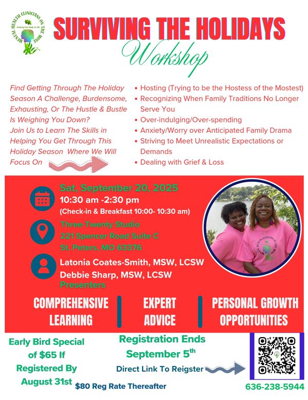 Registration for this upcoming event or for additional information, contact us at 636-238-5944 or embracehealingandwellnesstherapy@outlook.com